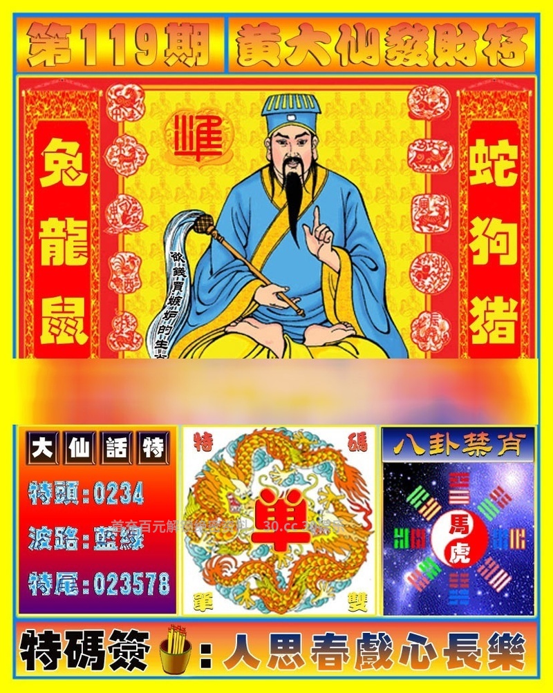 大仙精解:人思春戲心長樂,解吉美生肖兔龙蛇马羊鸡